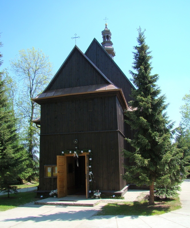 Obecny kościół, z modrzewia został wzniesiony w 1779 roku, zaś konsekrowany 28 października 1780 roku. Jest to kościół jednonawowy, o konstrukcji zrębowej. Ołtarz barokowy, z obrazem Matki Bożej z Dzieciątkiem, nad ołtarzem "Oko Opatrzności Bożej" W kościele znajduję się także zabytkowa chrzcielnica.