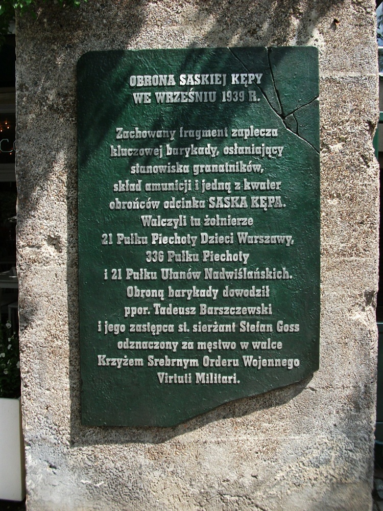 We wrześniu 1939 r. Saska Kępa stała się ważnym rejonem obrony przed nacierającymi wojskami niemieckimi. Linia wytyczona ulicami osiedla blokowała Niemcom dotarcie do centrum Pragi oraz przeprawę przez Wisłę do dzielnic położonych na lewym brzegu rzeki.