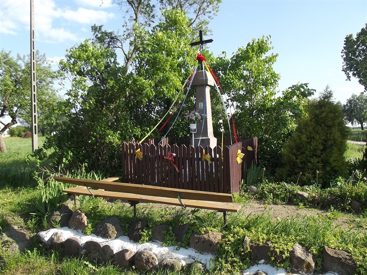 Krzyż ten mieści się we wsi Żebry Falbogi, w gminie Gzy. Jest to żelazny krzyż przydrożny, ustawiony na kilkustopniowym postumencie, otoczony drewnianym płotkiem. Na kamiennym cokole wyryto napis: „Boże, Błogosław Nam 1914 r. A M H”.