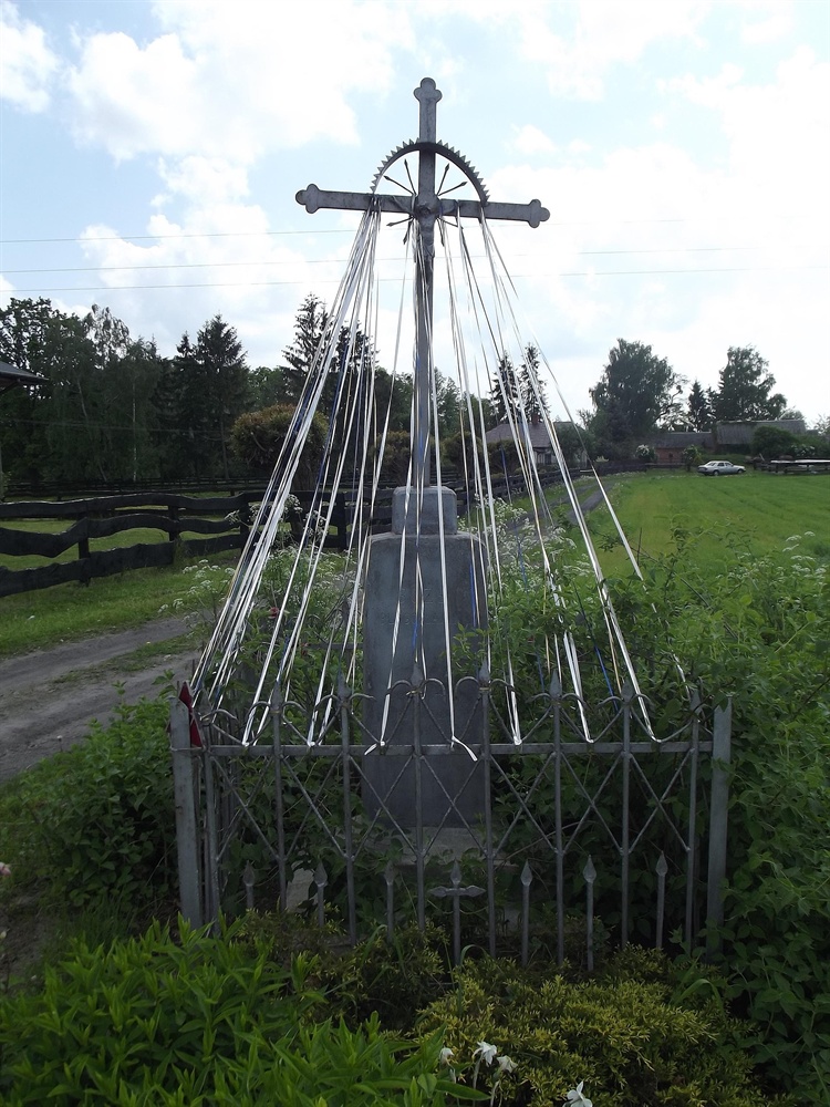 Znajduje się w miejscowości gminnej Płoniawy-Bramura, przy drodze prowadzącej do trasy krajowej nr 57, w pobliżu miejscowego marketu. Jest to żelazny krzyż ustawiony na niewielkim murowanym postumencie, na którym wyryto treść: „Boże, błogosław nam. W Roku 1949”. Otoczony jest metalowym ogrodzeniem.