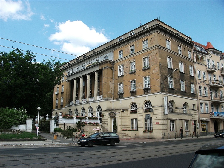 Budynek wzniesiono w 1925 r. w stylu odbiegającym od pobliskiej zabudowy powstającej jeszcze za panowania pruskiego. Klasycystyczna budowla wyróżnia się pośród secesyjnych kamienic i neogotyckich budynków publicznych. Dwupoziomowy obiekt połączył wyższe partie parku z niżej usytuowaną ulicą Głogowską. W elewacji centralnie umieszczono ryzalit z kolumnami jońskimi w tzw. wielkim porządku. W budynku ulokowano reprezentacyjny kompleks restauracyjny i rozrywkowy miasta, który otrzymał nazwę „Magnolia”.