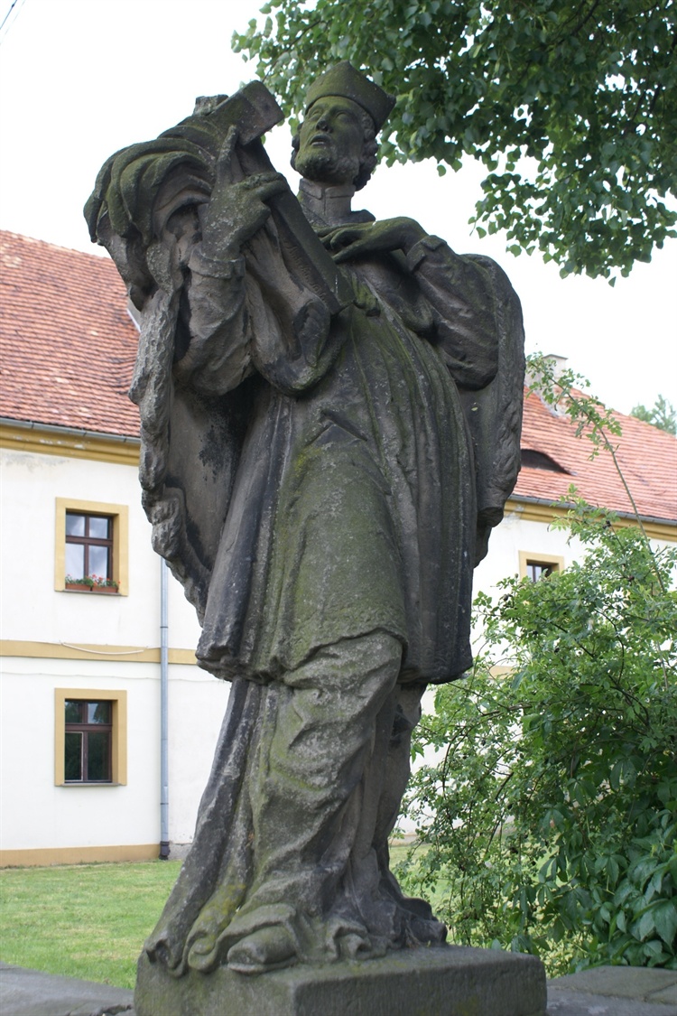 W kościele Wniebowzięcia NMP mieszczą się dwie kolejne figury świętego. Pierwsza to drewniana, barokowa figura świętego usadowiona w obłokach wśród główek aniołków. Natomiast druga ulokowana jest na przyściennej konsoli. Św. Jan przedstawiony jest tutaj z gałązką palmy w lewej dłoni oraz nieprawidłowo włożonym w lewą dłoń drewnianym krzyżem. Nad jego głową znajduje się aureola z pięcioma gwiazdami, które ukazały się nad ciałem świętego unoszonym przez Wełtawę i rozświetliły miejsce na rzece, gdzie rybacy je znaleźli i wyciągnęli.