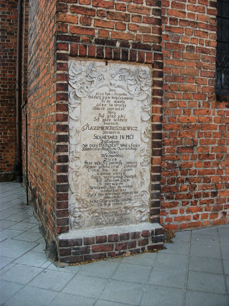 Dawną nekropolię przypominają dwa duże epitafia umieszczone w murach kościoła. Przez lata nie zwracali na nie uwagi nawet mieszkańcy miasta. W 2012 r. pięknie odrestaurowane przyciągają wzrok przechodniów. Jedno z nich pochodzi z okresu renesansu (XV-XVII w.) i przedstawia duchownego z krzyżem oraz tarczą. Drugie późnobarokowe jest późniejsze, pochodzi z 1741 r. i poświęcone jest Kazimierzowi Muszkiewiczowi. Muszkiewicz był w pierwszej połowie XVIII w. sekretarzem królewskim, wójtem i rajcą kościańskim. Przed renowacją napis i detale tablicy były niewyraźne, dziś dają się doskonale odczytać.