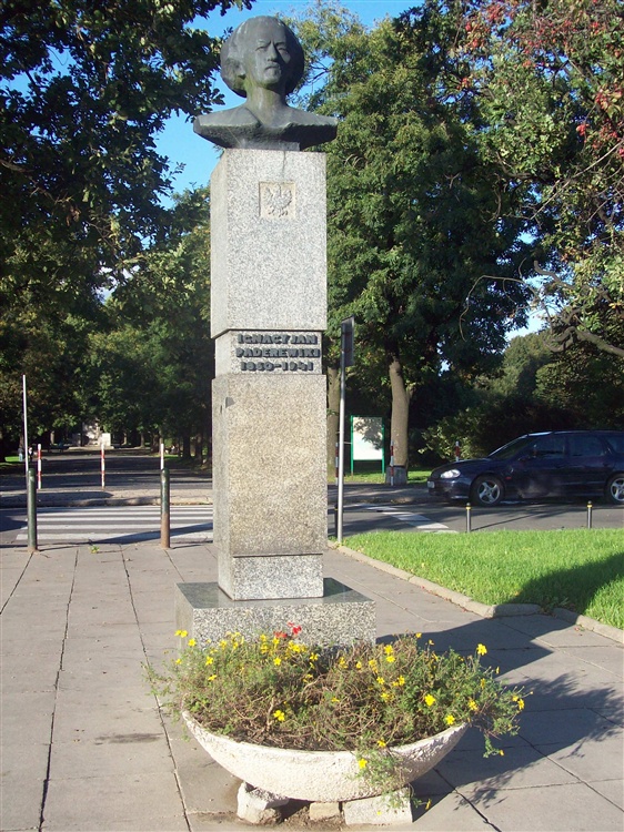 Pomnik Ignacego Paderewskiego znajduje się przed wejściem do Parku Skaryszewskiego od Ronda Waszyngtona. Ufundowany został przez Janinę i Zbigniewa Porczyńskich. Pomnik przedstawia popiersie Ignacego Jana Paderewskiego umieszczony na cokole. Autorem jest Stanisław Sikora mieszkaniec Saskiej Kępy. Został odsłonięty w 1988 roku.