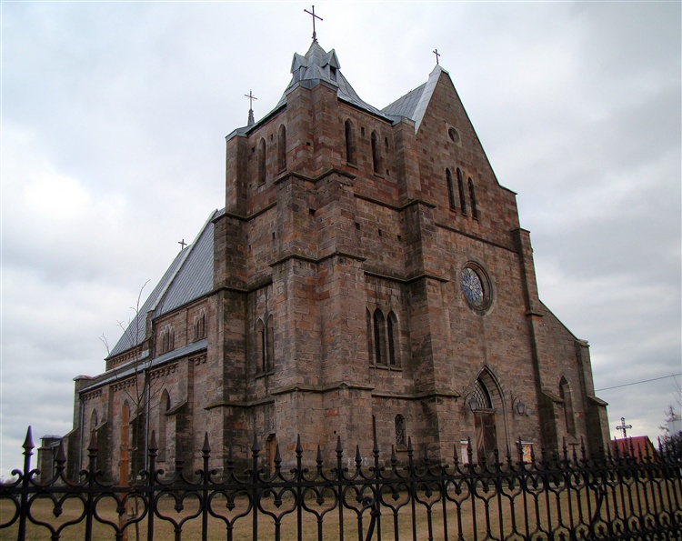 Drewniany kościółek pw.św. Zofii z 1818 r. stał się zbyt mały, wtedy to ówczesny proboszcz ks. Piontek rozpoczął w 1893 r. starania o uzyskanie pozwolenia na budowę murowanego kościoła. Dwa lata później rząd wydał zgodę, fundatorem został znany ze swej hojności hr. Ludwik Plater. Świątynia wybudowana została w latach 1886-1900 z kamienia ciosowego jako budowla trzynawowa o układzie bazylikowym wg. projektu arch. Antoniego Hutten – Czapskiego. Konsekrowany 8 lipca 1900 r. przez biskupa Antoniego Ksawerego Sotkiewicza.