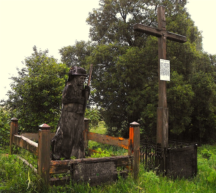 Udający się do tykocińskiego zamku turyści z pewnością zauważą stojący na poboczu wyniosły krzyż, a tuż obok niego drewnianą figurę. Większość przejeżdża obok w przeświadczeniu, że to kolejne wotywne miejsce, jakich wiele nie tylko na Podlasiu. Zgarbiona postać przypomina z dala świątka lub pielgrzyma. Ma się wrażenie, jakby pilnowała krzyża. Jak złudna bywa nasza wyobraźnia, przekonamy się dopiero wtedy, gdy zdecydujemy się zjechać na parking i przeczytamy umieszczone tam inskrypcje.