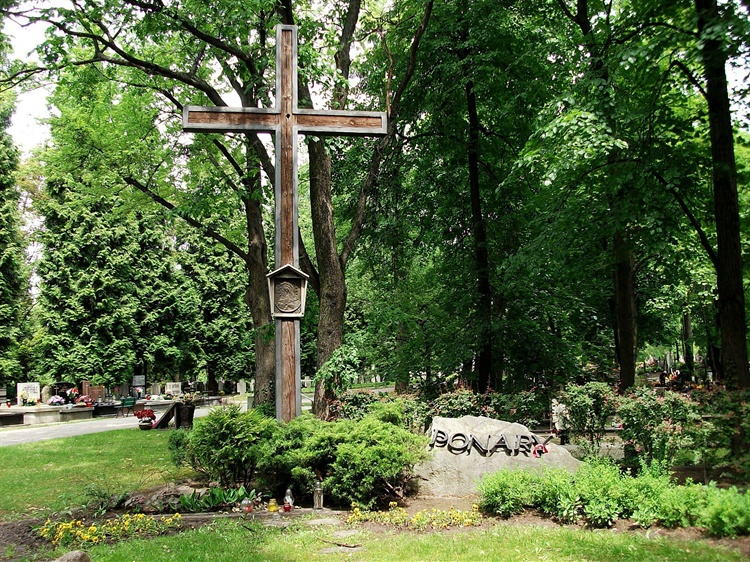 Na warszawskich Powązkach Wojskowych utworzono symboliczną mogiłę. Na miejsce pamięci składa się drewniany krzyż oprawiony metalową obwódką, do którego przymocowano małą kapliczkę z Matką Boską. Obok ułożony jest głaz z napisem: "Ponary". Całość uzupełniają krzewy, iglaki i kwiaty.