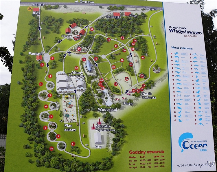 Ocean Park we Władysławowie oferuje nam spacer w towarzystwie przewodnika, który opowiada o zwyczajach oglądanych przez nas zwierząt. Podczas, gdy rodzice odpoczywać będą w zaciszu któregoś z punktów gastronomicznych, ich pociechy mogą rozładowywać nadmiar energii na sporym placu zabaw lub ściankach wspinaczkowych. Znajdziemy tu także plażę z żółciutkim piaskiem, ustawione w wielu zakątkach ławeczki, a nawet wodospad (za lustrem spadającej wody urządzono specjalne przejście). Wchodzących od strony dużego parkingu wita ogromniasty krokodyl.