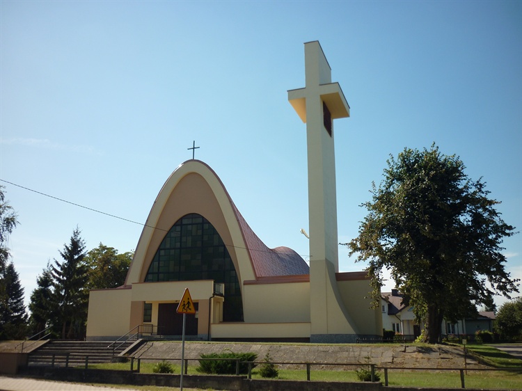 Obecna jednonawowa świątynia wzniesiona została w stylu nowoczesnym, posiada wysoką dzwonnicę w kształcie krzyża, która jest najwyższym elementem architektonicznym w miejscowości. Przy kościele mieści się Grota Najświętszej Maryi Panny oraz Droga Krzyżowa w formie parku.