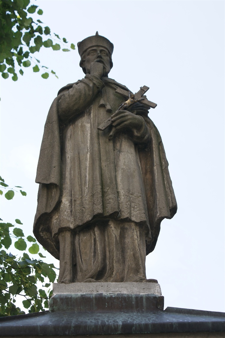 Przed kościołem NMP Niepokalanie Poczętej usytuowana jest figura św. Jana. Rzeźba świętego stoi na wysokim cokole, na którym widnieje rok 1907. Święty w lewej ręce trzyma krucyfiks na gałązce palmy, natomiast palcem wskazującym prawej dłoni dotyka ust, co ma świadczyć o tym, że dotrzymał tajemnicy spowiedzi.