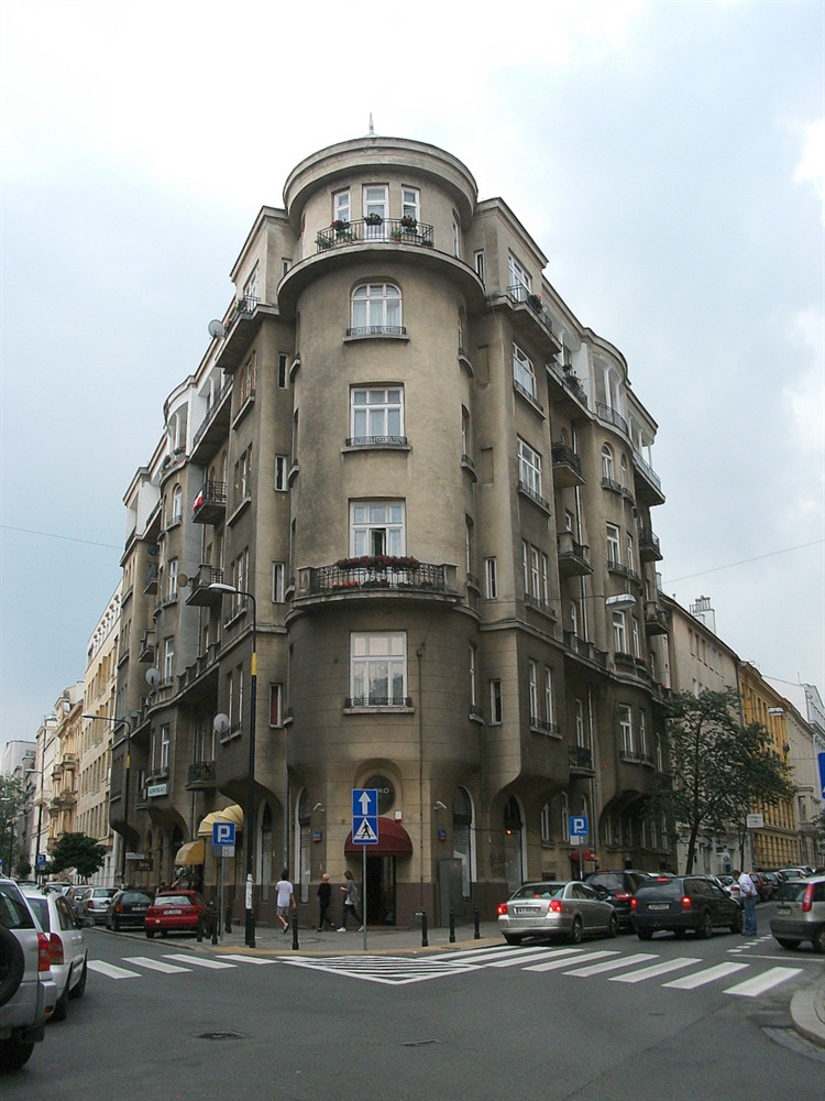Sześciopiętrowy budynek posiada krótsze skrzydło od ulicy Wilczej i dłuższe od ulicy Mokotowskiej. W fasadach tych skrzydeł znalazły się imponujące wykusze biegnące pomiędzy parterem a szczytem. Na osiach między wykuszami umieszczono balkony z kutymi balustradami. Ciekawym rozwiązaniem było ostatnie piętro z ciągiem balkonów i loggi obiegających całą długość budynku. Narożnik u zbiegu ulic przypomina wkomponowany w całość walec, który do 1944 r. nakryty był kopułą w kształcie pąka.