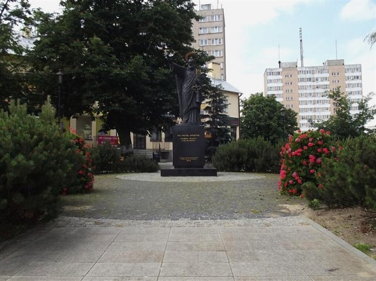 Pomnik patrona miasta św. Piotra Apostoła wykonał ciechanowianin, rzeźbiarz Marek Zalewski. Rzeźba powstała z okazji jubileuszu 2000. rocznicy narodzin Jezusa Chrystusa. Odsłonięta została w tymże 2000 roku na ciechanowskim Starym Mieście.