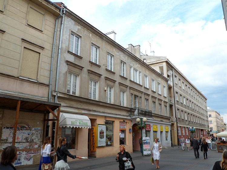 Dom, noszący dziś numer 16, powstał w latach 1828-1829. Był wówczas jednopiętrowym, kilkuosiowym budynkiem z oficynami mieszkalnymi na zapleczu. Prowadził do nich przejazd bramny usytuowany w centralnej osi. W 1875 r. w czasie największego rozwoju arterii kamienicę nadbudowano do wysokości dwóch pięter. W pierwszej połowie XX w. mieścił się tutaj jeden z ówczesnych gościńców – hotel „Hiszpański”.