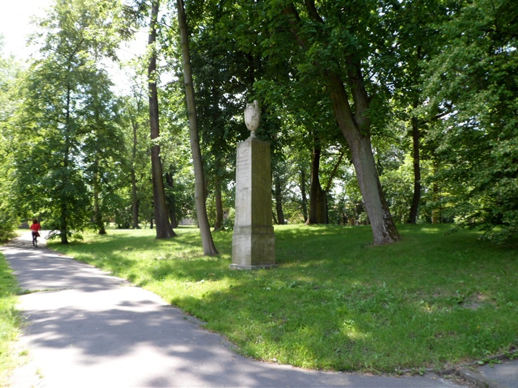 Kamienny pomnik z urną na szczycie oraz okolicznościową dedykacją na cokole został ufundowany przez spokrewnioną z Potockimi rodzinę Mostowskich.