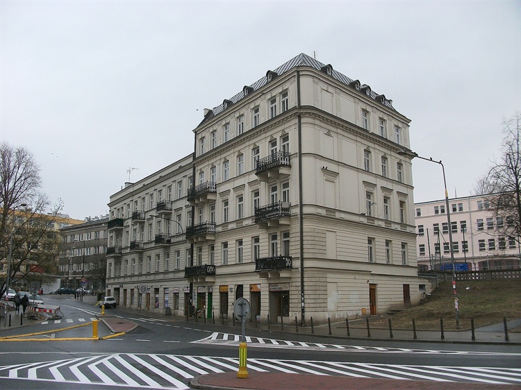 Niższa, czterokondygnacyjna kamienica została zbudowana w latach 1894-1895. Projekt budynku opracowali Władysław Wolkiewicz i Jan Hinz, nadając mu klasycystyczne formy. W 1901 roku obok powstała druga kamienica Dusoge’a. Ten budynek, również o cechach neoklasycystycznych, był wyższy o jedną kondygnację. Partery obu domów mieściły sklepy, natomiast wyższe kondygnacje mieszkania czynszowe.