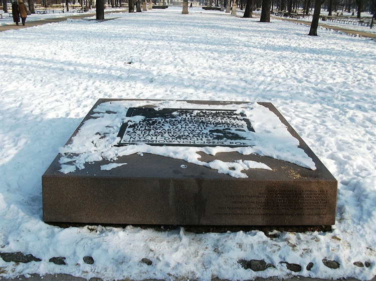 22 maja 1921 r. w Ogrodzie Saskim miała miejsce uroczystość powitania przez marszałka Józefa Piłsudskiego oddziałów wojskowych powracających z wojny polsko-bolszewickiej. Wśród witających żołnierzy byli także gen. Kazimierz Sosnkowski oraz prezydent Warszawy Stefan Starzyński. Wydarzenie to uczczono pamiątkową tablicą umieszczoną 12 listopada 1938 r. na osi Ogrodu. Tablica przetrwała okupację, jednak po wojnie zaginęła. Została odtworzona w 1995 r., a w 2011, po renowacji zamocowana na nowym cokole. Napis na tablicy głosi: "22 maja 1921 r. marszałek Piłsudski w dniu powrotu zwycięskiego wojska witanego radośnie przez stolicę wyraził z tego miejsca uznanie dla Warszawy za jej patriotyczną postawę w pamiętnych dniach sierpniowych 1920 roku".