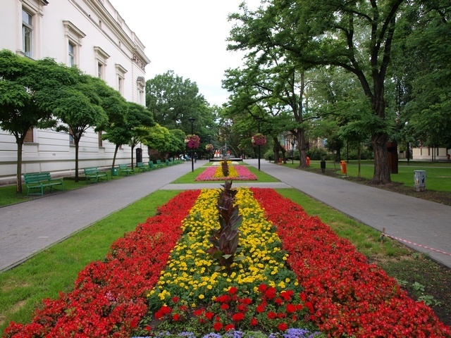 Usytuowany jest pomiędzy ul. Piotrkowską i Al. Tadeusza Kościuszki, w "towarzystwie" Pałacu Maksymiliana Goldfedera i domu rodzinnego wielkiego pianisty Artura Rubinsteina. Mieszczące się tu wspaniałe dywany kwiatowe i rzeźby parkowe stwarzają niesamowity klimat. W upalne dni ochłodę da nam fontanna z "Łódzką Syrenką" (wybudowana w roku 1961; postać nimfy narodziła się w dłoniach rzeźbiarza pana Edwarda Nowickiego). Spragnieni mogą napić się wody z ulicznego zdroju, a nasi najmłodsi milusińscy mogą się bawić na specjalnie przygotowanym do tego - ogrodzonym - placu zabaw. A jeśli ktoś zechce się na chwilę cofnąć wirtualnie w czasie, może usiąść na ławeczce i spojrzeć na kamienicę (strona północna parku) z freskiem "Łódź w pigułce". Polecam wszystkim to miejsce.