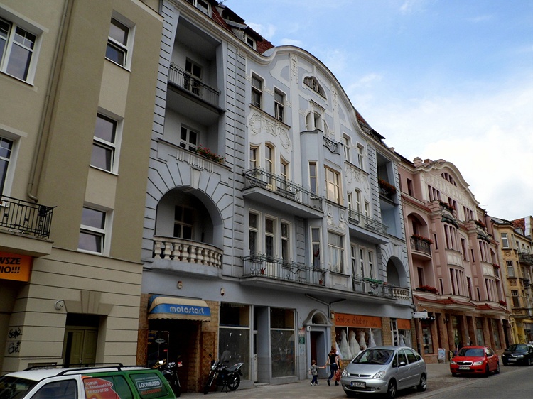 Secesyjny budynek powstał w 1906 r. i był wtedy jednym z najelegantszych domów przy ulicy Dworcowej. Nienagannie zaprojektowana bryła z harmonijnie ułożoną fasadą zachwyca do dzisiaj. Trzypiętrowy budynek charakteryzuje się centralnym, szerokim ryzalitem zwieńczonym szczytem, po bokach którego umieszczono piony z loggiami. Również w centrum elewacji, na wysokości pierwszego i drugiego piętra znajduje się wysunięty wykusz, od którego na boki odbiegają balkony. Swoistego rodzaju ozdobą są różnej wielkości i kształtu otwory okienne. Fasada otrzymała delikatny detal sztukatorski idealnie uzupełniający wygląd kamienicy.