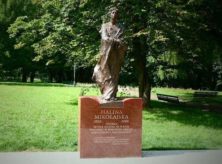 Halina Mikołajska (1925-1989) była aktorką i reżyserką teatralną, związaną od 1950 r. ze scenami warszawskimi, oraz żoną znanego pisarza Mariana Brandysa. Pod koniec lat sześćdziesiątych zaangażowała się w działania opozycyjne. Działała w Komitecie Obrony Robotników, wspierając prześladowanych działaczy opozycji. W czasie stanu wojennego była internowana.