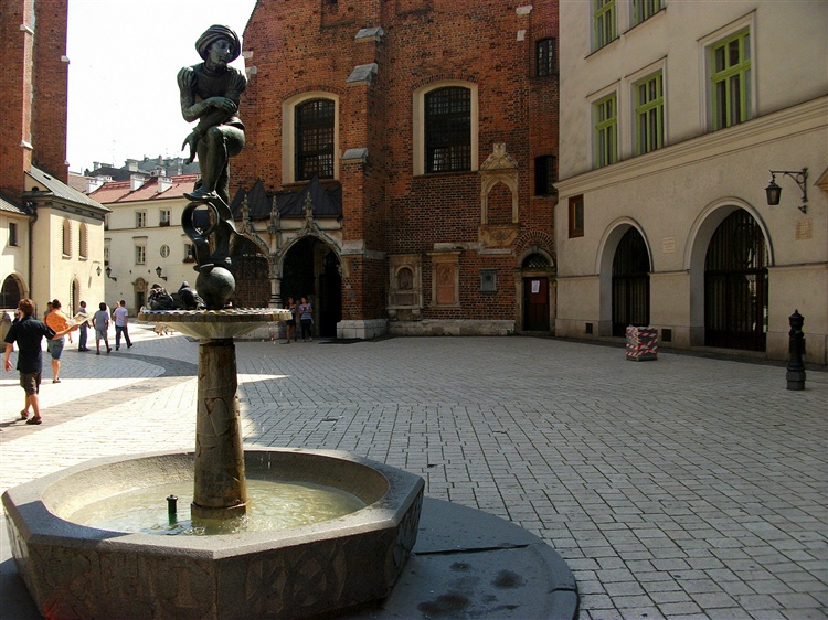 Pomnik - fontanna Żaka znajduje się na Placu Mariackim. Został zaprojektowany przez Jana Budziłło i odsłoniety w 1958 r. Postument jest hołdem dla Wita Stwosza złożonym przez rzemieślników krakowskich. Figura żaczka jest kopią jednej z figur znajdujących się w ołtarzu Wita Stwosza w kościele Mariackim.