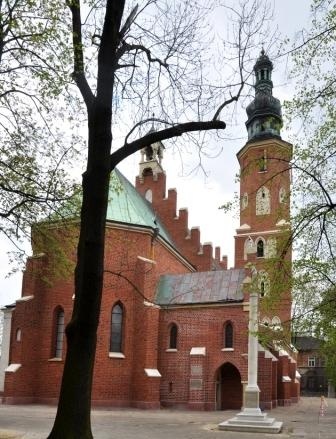Pierwotnie była to gotycka, ceglana świątynia, o prostokątnej formie, z jedną nawą i niższym prezbiterium. W kolejnych wiekach dobudowano do niej kaplice kultowo-grobowe. W latach 1439-1460, przy zachodnio-północnej stronie kościoła, wzniesiono masywną wieżę-dzwonnicę, przykrytą ceglanym, stożkowym hełmem (obecnie widocznym jedynie od wnętrza). Pełniła ona również funkcję strażnicy miejskiej.