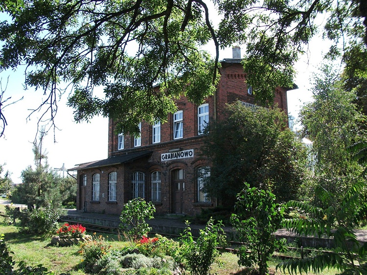 Jeden z przystanków połączenia zbudowano w Grabianowie, które było dogodnym miejscem przywozu i wywozu towarów z okolicznych majątków ziemskich. Dla obsługi ruchu kolejowego wzniesiono budynek stacyjny oraz mieszkalny dla pracowników.