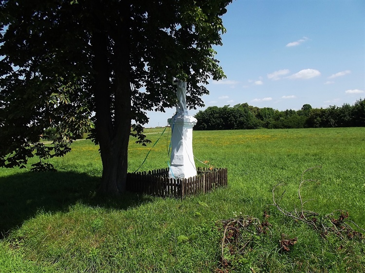 Wystawienie figury datowane jest (sądząc po budowie postumentu i wzmiankach w historii miejscowości) na koniec XIX lub początek XX wieku. Jest to najbardziej zadbany – dzięki staraniom państwa Rychter, tj. corocznej kwietniowej renowacji i malowaniu – jeden z ośmiu „przydrożnych świątków” łukowskich. Figura wykonana jest z piaskowca. Cokół wymurowany został z czerwonej cegły, której wówczas w Łukowie nie brakowało dzięki miejscowej cegielni.
