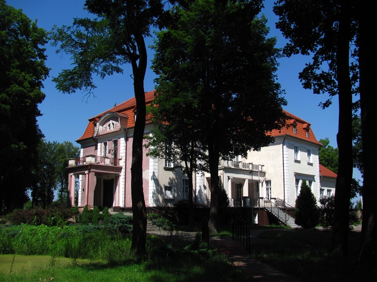 Dwukondygnacyjny obiekt został zlokalizowany na planie wielobocznym i nakryty dachem mansandrowym, w środku zachowały się reprezentacyjna klatki schodowa i dekoracja stiuków, a sam obiekt użytkuje szkoła ogrodnicza, wokół obiektu rozciąga się ciekawe założenie parkowe z trzema stawami