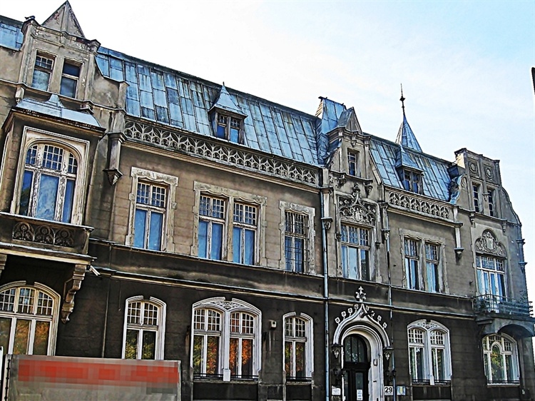 Zabytkowa kamienica o ozdobnym frontonie z trzema dekoracyjnymi pasami, dzielącymi go pionowo na trzy części. Z boku znajduje się wysunięta część budynku na kształt wieży. Wpisana do rejestru zabytków nieruchomych 18 lutego 1988 roku przez Wojewódzkiego Konserwatora Zabytków.