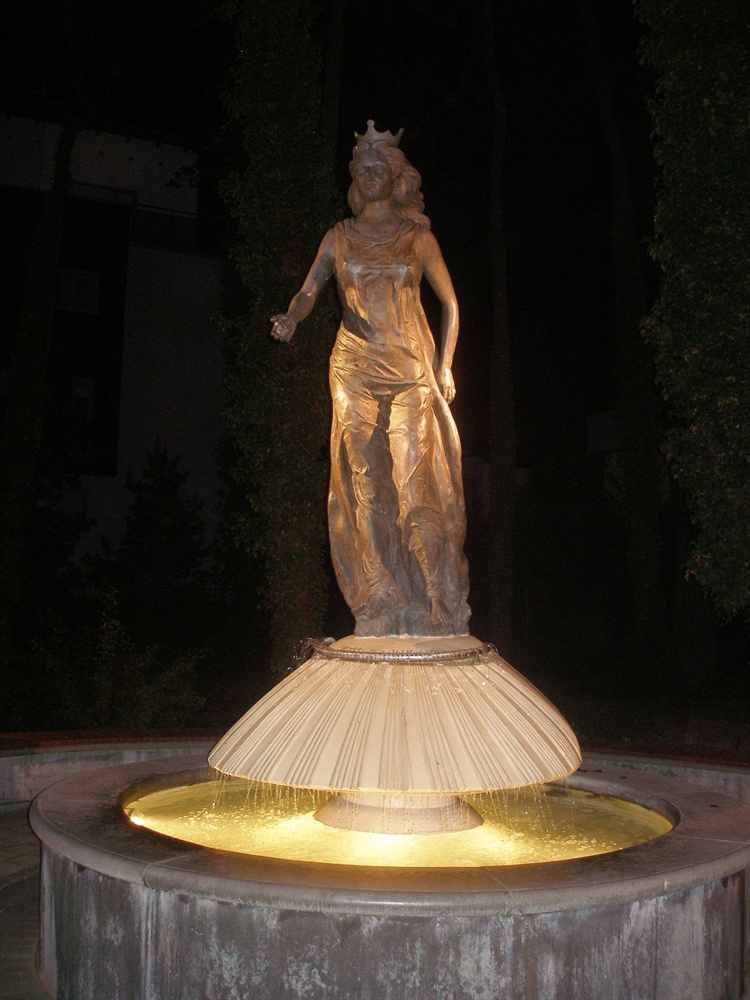 Fontanna i pomnik córki Króla Mórz – Juraty odsłonięty został 22 lipca 2006 r. w 75 rocznicę powstania uzdrowiska. Wyrzeźbiony został przez Stanisława Szwechowicza z Gdańska. Jedna z legend głosi, iż rozgniewany ojciec, gdy dowiedział się o miłości córki i rybaka, zniszczył bursztynowy pałac ciskając w niego piorunami. Potężny sztorm zabił Juratę, a resztki bursztynu ze zniszczonego pałacu można odnaleźć na plaży.
