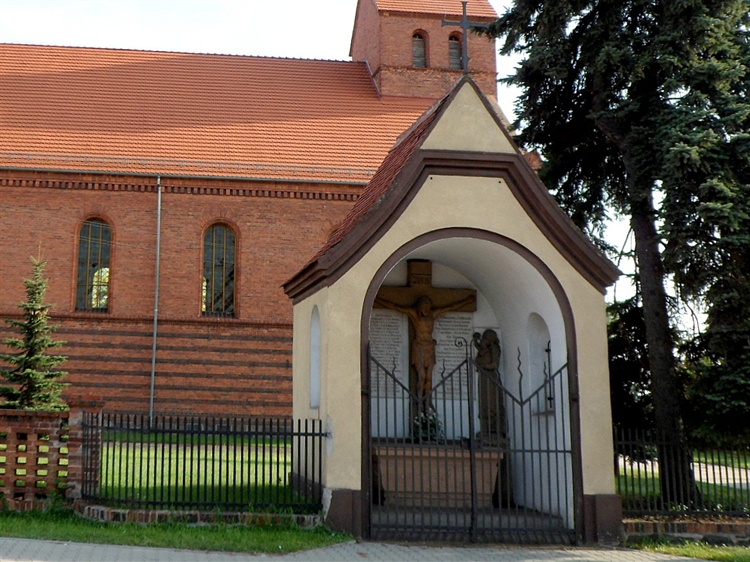 Do 1945 r. na kapliczce widniał niemiecki Krzyż Żelazny, daty 1914-1918 oraz napis „Unseren Helden” (Naszym Bohaterom). Po wojnie skuto napis, krzyż oraz daty, a pomnik potraktowano jako religijną kapliczkę. Szczęśliwie nie zniszczono tablic oraz płaskorzeźb.
