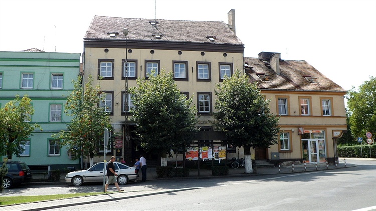 Gospoda, pochodząca z początków XIX, a przebudowana w XX w., stała się siedzibą Gminy, a po odzyskaniu praw miejskich Urzędu Miasta i Gminy. Ciekawostką budynku jest znajdujący się w elewacji frontowej płaskorzeźbiony herb miasta. Pochodzi on prawdopodobnie ze zniszczonego ratusza i został umieszczony w obecnym miejscu po wyborze nowej siedziby władz.