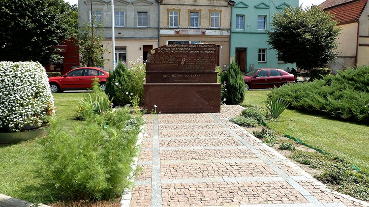 Obelisk, którego inicjatorami budowy byli proboszcz parafii św. Józefa Oblubieńca i burmistrz miasta, odsłonięto 9 maja 2010 r. Na płycie pomnika umieszczono, poza wyrazem hołdu dla ofiar, cytaty Zbigniewa Herberta i Lecha Kaczyńskiego, a także słowa: "Bóg, Honor, Ojczyzna".