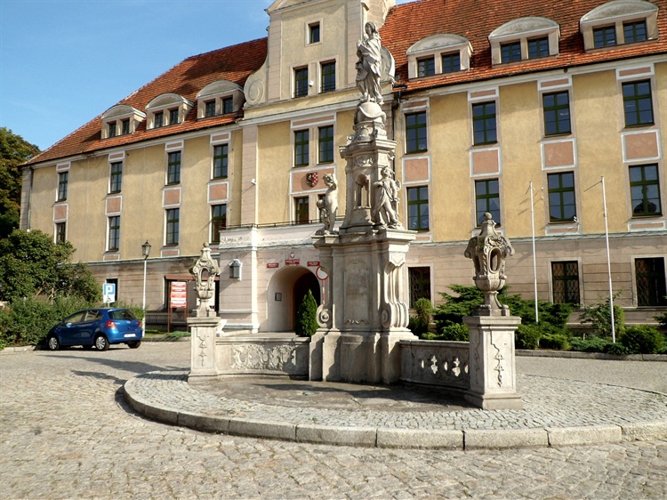 Kolumna Maryjna - obok stojącej przed ratuszem figury św. Jana Nepomucena - jest jednym z barkowych symboli Wołowa.