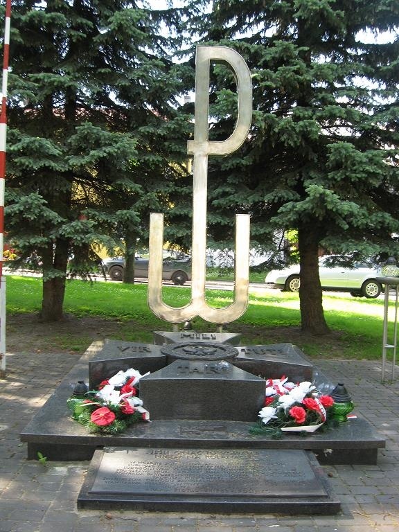 Na niewielkim skwerku za ratuszem w Szczebrzeszynie znajduje się pomnik wystawiony w hołdzie żołnierzom AK, broniącym ludność Zamojszczyzny przed hitlerowskim ludobójstwem w okresie IX 1939 - VIII 1944. Na granitowym postumencie który ma kształt orderu Virtuti Militari ustawiony jest znak Polski walczącej. Na dużej płycie widnieje napis "Jeśli ginąć to w walce, nigdy na kolanach" i nazwiska poległych. Mała zaś informuje, że została tu umieszczona urna z ziemią zroszona krwią, walki, męczeństwa i cierpień z różnych tragicznych miejsc tych okolic.