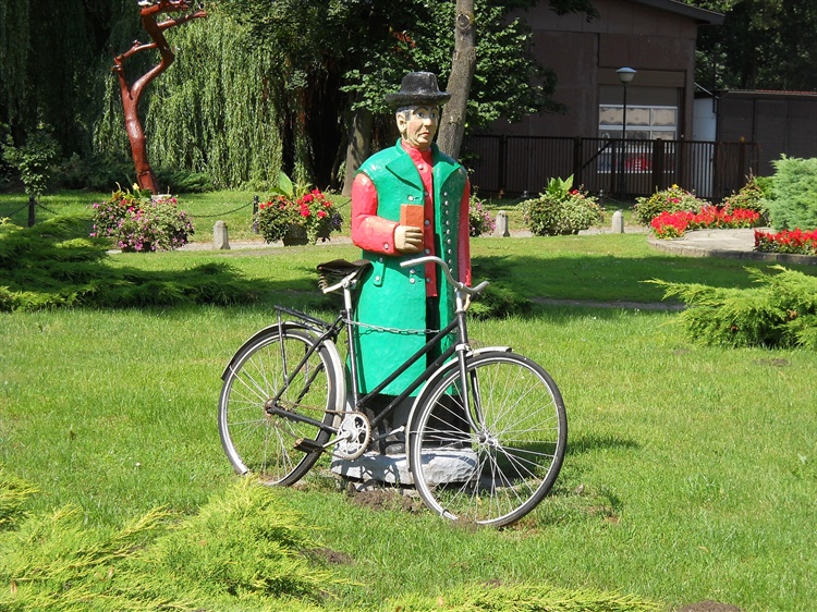We Włoszakowicach, w parku przed oficyną pałacową znajduje się ciekawa rzeźba. Przedstawia chłopa, a może wójta w odświętnym stroju regionalnym. W ręku trzyma cegłę. Przy jego boku umocowany jest rower. Nie wiadomo, czy było to zamierzone, czy też pomysł z rowerem pojawił się później.