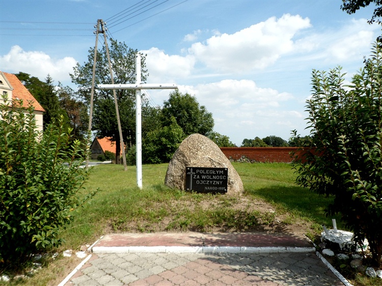Wińsko w czasie walk w 1945 r. zostało w znacznej mierze zniszczone. W gruzach legła zabudowa przy dzisiejszej ulicy Rawickiej. Plac uporządkowano, ale nie zbudowano na nim nowych domów. W 1995 r. na niezagospodarowanym terenie powstał pomnik poświęcony poległym za wolność ojczyzny. Składa się z głazu narzutowego z tablicą oraz metalowego krzyża. Krzyż pomalowano na biało z czarnymi plamami tak, by imitował symboliczny krzyż brzozowy.
