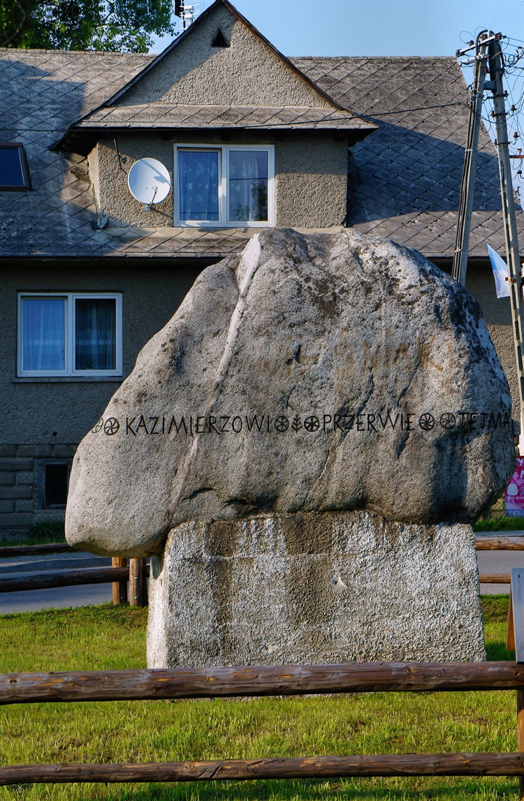 Pamiętając zasługi poety, w 1965r., w 100 rocznicę urodzin i 25 rocznicę śmierci poety, mieszkańcy Ludźmierza ustawili w centralnym punkcie pamiątkowy granitowy kamień przywieziony z Suchej Wody w Tatrach, miejsca, które swoim niesamowitym widokiem na grań Kasprowego, aż po Kopieniec, grań Kopy Sołtysiej i Koszystej, zauroczyło Kasprowicza. Jest on symbolem twórczości poety, jego przywiązania do gór i miejscowych tradycji.