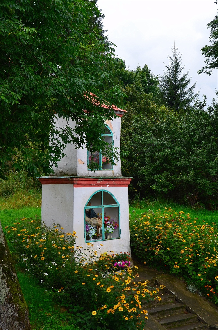 Ogólnie jest to obiekt typowy dla tego regionu. Jest to kapliczka murowana z cegły, na podmurówce kamiennej, otynkowana, z pobiałkowaną elewacją, bardzo prosta w swoim założeniu. Jej konstrukcja jest graniastosłupowa, dwukondygnacyjna; w jej frontowych ściankach zlokalizowane są przeszklone łukowe wnęki. W górnej wnęce umieszczono krucyfiks, dolna zaś zawiera Pietę - jest dużo młodsza, bo pochodzi z XX wieku. Do kapliczki prowadzą betonowe schody. Ponadto znajduje się ona pod stałym nadzorem i jest często remontowana - z pewnością ze względu na wiek. Nie wygląda na zaniedbaną, gdyż zawsze wokół niej są świeże kwiaty.