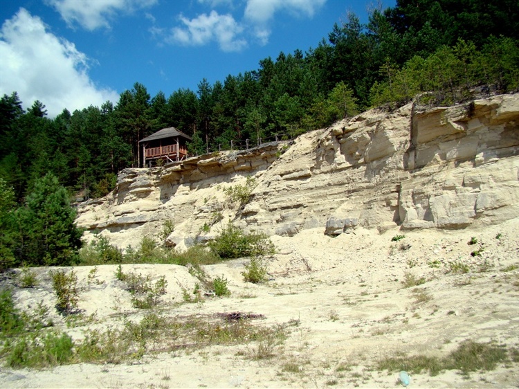 Na południowo-wschodnim zboczu Krzyżowej Góry koło Nowin, znajduje się nieczynny kamieniołom. Prowadzono tu eksploatację wapienia i robili to więźniowie (żołnierze AK) z obozu NKWD i UB w latach 1944 do 1945. Aktualnie stał się atrakcją turystyczną. Na szczycie kilkunastometrowej ściany wyrobiska zbudowano platformę widokową, skąd rozciąga się rozległy widok na Puszczę Solską.