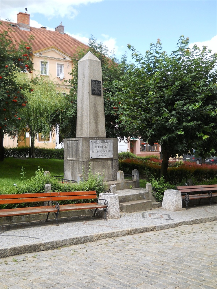 Pomnik znajduje się w Rynku, tuż przy Ratuszu. Monument posiada dwie tablice. Górna przedstawia orła w koronie, natomiast dolna napis: "Wieczna chwała bohaterom poległym za wolność narodow".