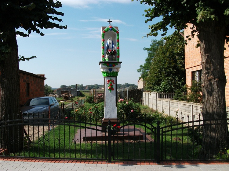 Świniec to wieś leżąca nad Kanałem Kościańskim, oddalona niespełna 3 kilometry od Krzywinia. W pobliżu miejscowości odkryto pozostałości wczesnośredniowiecznego grodziska i cmentarzyska kultury łużyckiej. Artykuł ten poświęcam młodszej atrakcji miejscowości. Jest nią kapliczka Matki Boskiej stojąca przy drodze przebiegającej przez wieś. Pochodząca z początku XX wieku kapliczka ma typową dla tego okresu formę słupową. Na murowanej kolumnie z ozdobnym kapitelem znajduje się skrzynka, w której stoi figura Matki Boskiej. Kolorowa i pięknie odnowiona w ostatnim okresie kapliczka przyciąga uwagę swym niewątpliwym urokiem.