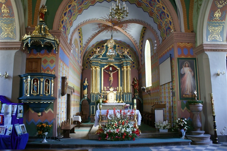 Późnorenesansowy kościół wzniesiono w 1610 roku. Częściowo zniszczony podczas pożaru w 1896 roku, został odbudowany bez zachowania oryginalnego wyglądu. Wprowadzone zmiany architektoniczne zatarły pierwotny styl budowli. Do cenniejszych elementów wyposażenia wnętrza należą: barokowy krucyfiks z XVII wieku, obraz św. Jacka z XVIII wieku oraz ołtarze z XIX wieku. Wewnątrz kruchty umieszczona została pamiątkowa tablica poświęcona rodzicom Stefana Żeromskiego, pochowanym na miejscowym cmentarzu.