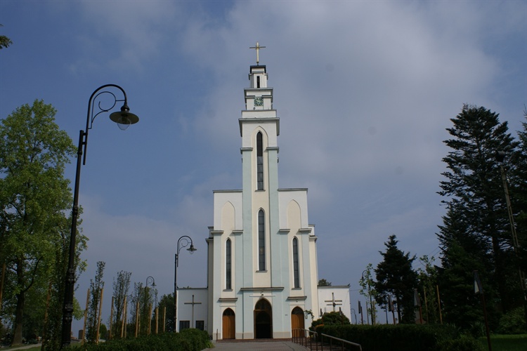Uroczyste wmurowanie kamienia węgielnego pod budowę obecnego murowanego kościoła miało miejsce 3 listopada 1862 r. Po siedmiu latach budowy, w 1869 r świątynia pw. św. Anioła Stróża została poświęcona. Koniec drugiej wojny światowej nie był łaskawy dla kościoła. Podczas działań wojennych na przełomie lutego i marca 1945 r został zniszczony w 80 %. Bardzo szybko, bo już w latach 1946-48 został odbudowany i ponownie poświęcony z dodaniem wezwania Narodzenia NMP.
