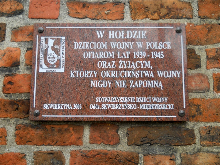 W Skwierzynie, na murze kościola św. Mikołaja znajduje się tablica pamiątkowa poświęcona dzieciom wojny. Ufundowana zostala w 2005 roku przez Stowarzyszenie Dzieci Wojny - Oddział Skwierzyńsko-Międzyrzecki. Napis na tablicy brzmi: " W hołdzie dzieciom wojny w Polsce, ofiarom lat 1939-1945 oraz żyjącym, którzy okrucieństwa wojny nigdy nie zapomną".