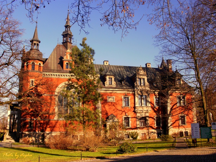 Zespół pałacowo-parkowy (znany przede wszystkim jako Pałac Ballestremów) z końca XIX w. tworzą pałac z kaplicą, zabudowania folwarczne, oficyna ze stajnią i wozownią - wszystko w stylu neomanieryzmu niderlandzkiego z wieloma dodatkami neogotyckimi, a do tego otaczający pałac park krajobrazowyJest to bez wątpienia jeden z najbardziej urokliwych zakątków Polski.