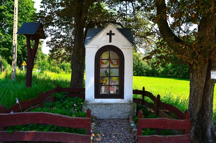 Wybudowana została na początku XX w. Jest murowana na niewielkim cokole, z czterech stron umieszczone są niewielkie wnęki zamknięte pełnym łukiem. Wnęka od strony południowej jest oszklona, wewnątrz niej znajduje się figura Matki Bożej zawsze w otoczeniu kwiatów. Całość przykryta jest dwoma dwuspadowymi daszkami wzajemnie krzyżującymi się.
