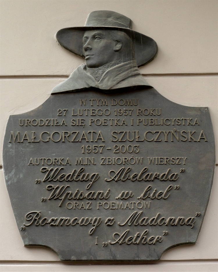 Małgorzata Szułczyńska (1957-2003), urodzona w Bydgoszczy i całe życie związana z miastem nad Brdą, była poetką i publicystką oraz aktywną uczestniczką tutejszego życia kulturalno-społecznego. Wydała kilka tomików wierszy, wśród których wymienić należy zbiory „Według Abelarda” oraz „Wpisani w biel”. Spod jej pióra wyszły poematy „Aether” i „Rozmowy z Madonną”. Szułczyńska była również autorką biografii częstochowskiej poetki Haliny Poświatowskiej.