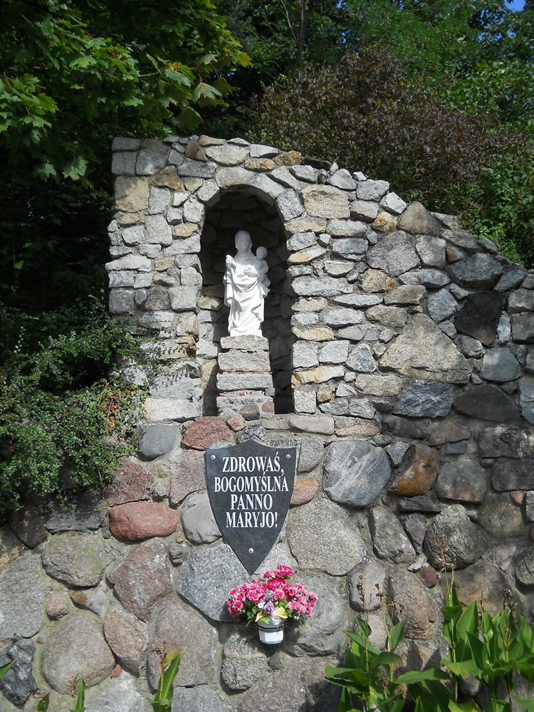 Grota Matki Boskiej znajduje się przy kościele pw. św. Piotra Apostoła. Wymurowana jest z wielu kamieni. We wnęce mieści się figurka Matki Boskiej trzymającej na lewej ręce Dzieciątko Jezus, natomiast w prawej gołębia, który jest symbolem miłości i pokoju. Pod figurą umieszczona jest tarcza z napisem: "Zdrowaś, Bogomyślna Panno Maryjo".