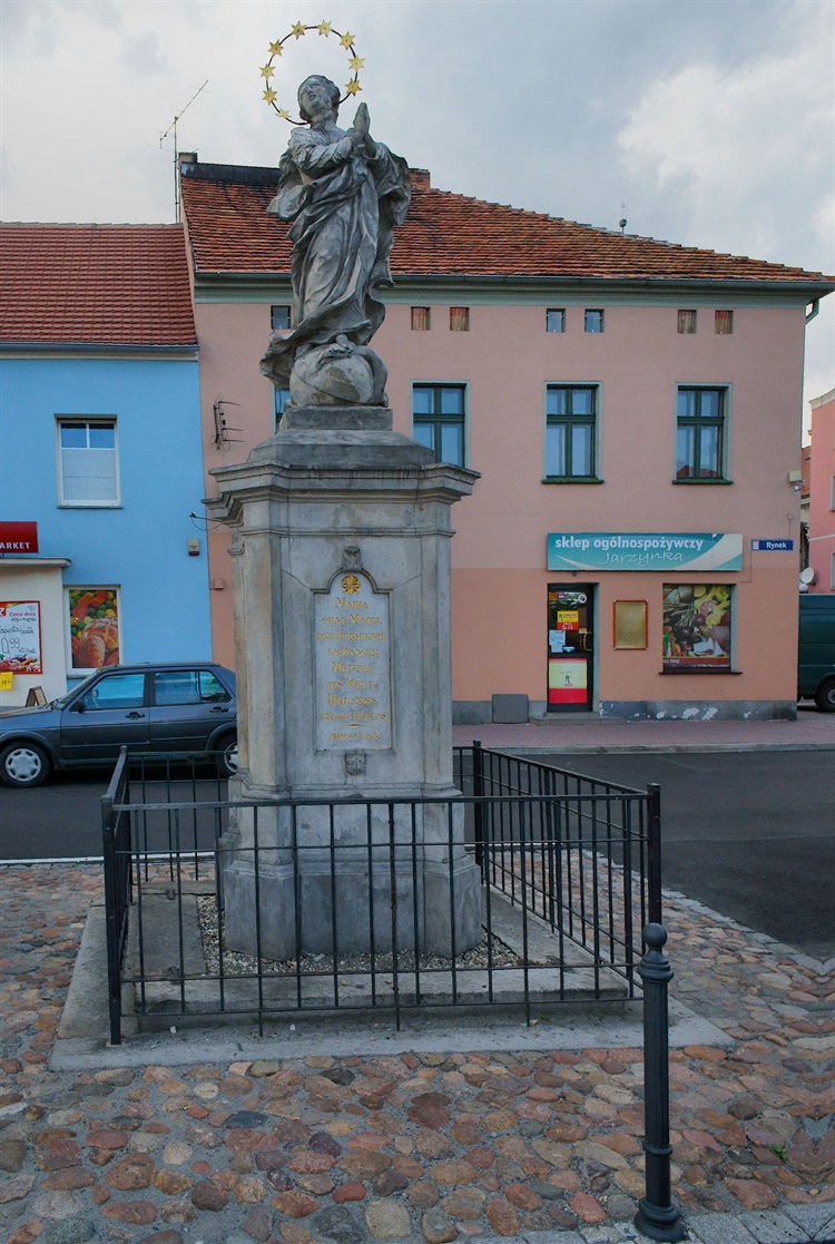 W niepozornej, a historycznie ciekawej miejscowości, bo pamiętającej przełom XII i XIII wieku, istnieje wspaniały ryneczek otoczony zachowanymi piętrowymi kamieniczkami, wśród których w oczy rzucają się dwa wspaniałe barokowe posągi Matki Boskiej Niepokalanie Poczętej i św. Jana Nepomucena.